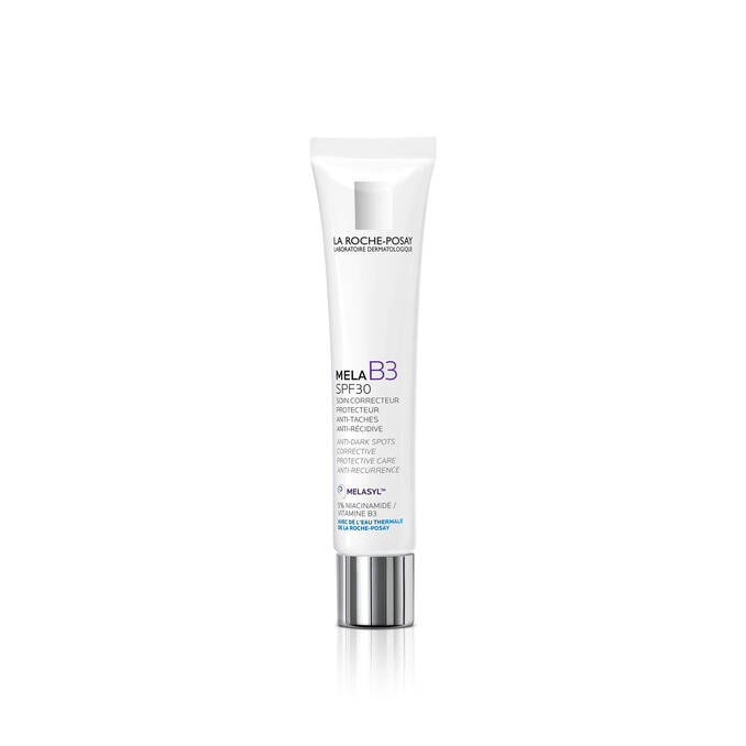 MELA B3 SPF 30 is the new corrective and protective care to target hyperpigmentation and correct the look of dark spots, powered by multi-patented Melasylโข and 5% Niacinamide. Formulated with our new patented molecule Melasylโข and Pure Niacinamide, our new range helps correct the look of even the most persistent dark spots. This cream is formulated with a SPF 30 protection to help prevent new dark spots from appearing. Ultra-comforting, non-sticky velvet texture. Suitable for daily use even under make up.ย Hyperpigmentation Innovation: new multi-patented Melasylโข active. Fight Hyperpigmentation. A new mode of action#, like never before. Intercepts excess melanin at a different stage of its production before it marks the skin.